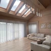This project represents a two-storey timber house with a separate Sauna building , located in the suburb of Riga, on a 2,500 m² plot.